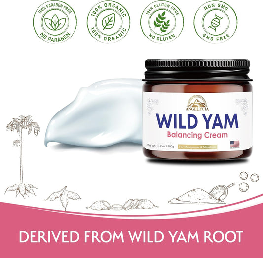 Organic Wild Yam Cream for Hormone Balance in Women | Hormone Support for PMS, Perimenopause & Menopause | 100% Pure | 6.76 Oz Jar