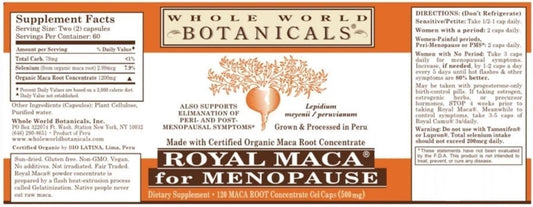 Royal Maca 120 Gel Capsules for Menopause Support - Whole World Brand