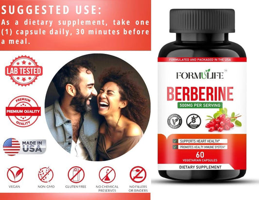 Berberine Supplement 500mg Capsules | AMPK Activator | Vegan Berberine HCL | Lab Tested, Non-GMO, Gluten-Free | Made in USA | 2 Months Supply