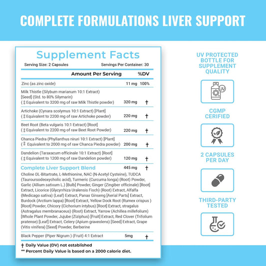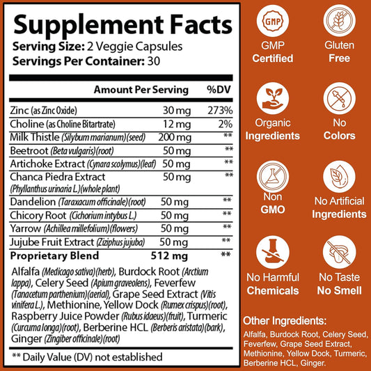 Liver Support Supplement with Milk Thistle, NAC, Dandelion Root, Beet Root, Artichoke, Chanca Piedra, TUDCA | 60 Capsules