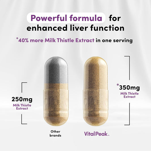 Natural Liver Support Supplement - Vital Peak Milk Thistle Extract Capsules for Detox & Cleanse - Herbal Liver Health Aid with Silymarin - 60 Count