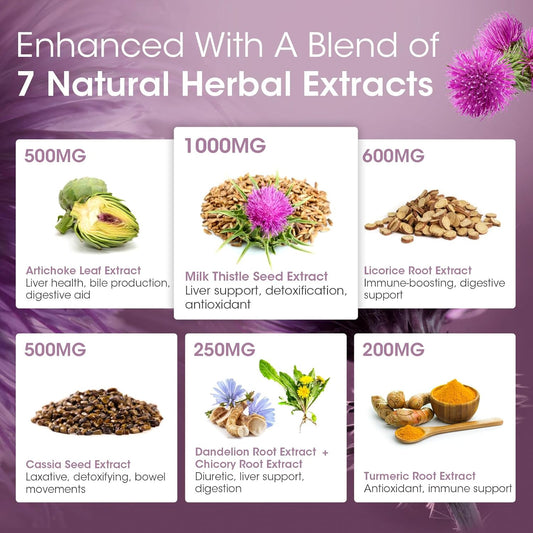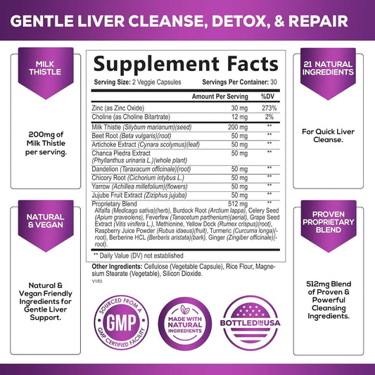 Gentle Liver Cleanse & Repair Formula - Herbal Supplement with Milk Thistle, Artichoke, Dandelion, Beet, Chicory Root, and Turmeric - 60 Capsules for Liver Health
