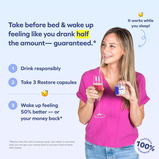 Liver Support Supplement with DHM & L-Cysteine - Cheers Restore | 6 Doses for Hangover Relief & Liver Health | Dihydromyricetin, Milk Thistle, B-Vitamins, Ginger | Feel Better After Drinking