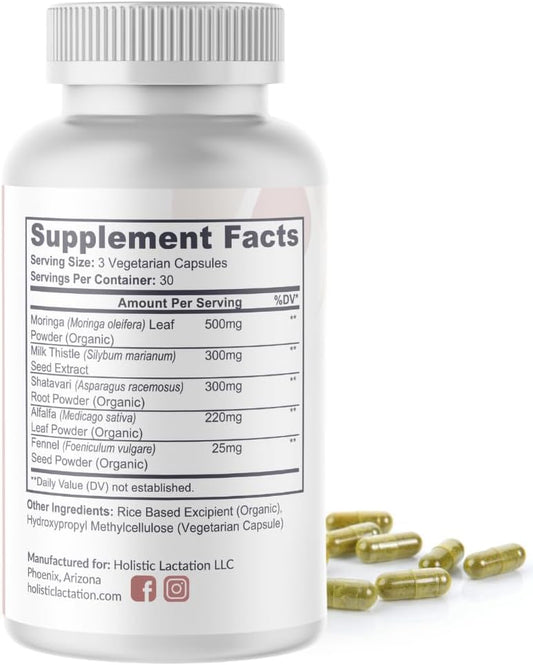 Organic Moringa and Milk Thistle Extract Lactation Supplement - Supports Milk Supply, Fenugreek-Free Formula (30 Servings)