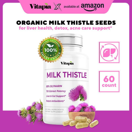 Organic Milk Thistle Supplement - Liver Cleanse Detox & Repair - Antioxidants - 60 Vegan Capsules - Non-GMO - Gluten-Free - Vitapia Liver Health Support