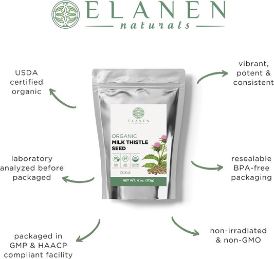 USDA Certified Organic Milk Thistle Seeds 4 oz (113g) by Elanen Naturals - Bulk Dried Silybum Marianum Semillas de Mariano - Whole Natural Seed
