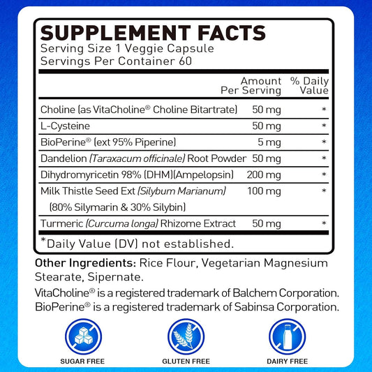 Liver Cleanse & Detox Capsules with Milk Thistle, Dandelion, Turmeric - 60 Capsules