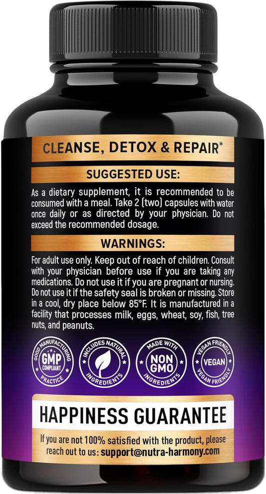 Liver Cleanse Detox & Repair Supplement by NUTRAHARMONY - Natural Formula for Liver Health and Function - Supports Detoxification and Repair Processes