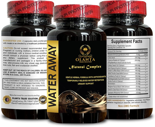 Natural Diuretic Water Away Pills - Fast-Acting Herbal Formula for Fluid Balance - 60 Capsules