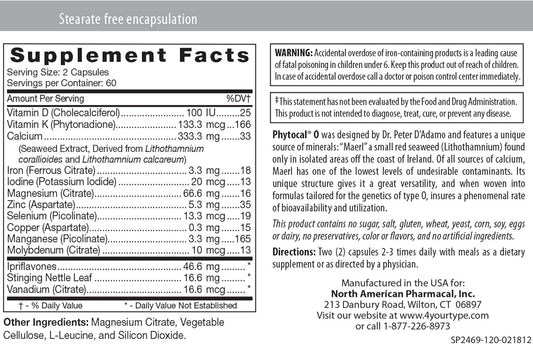 2 Pack of D'Adamo Personalized Nutrition Phytocal Mineral Formula for Type O Blood Type - 120 Capsules
