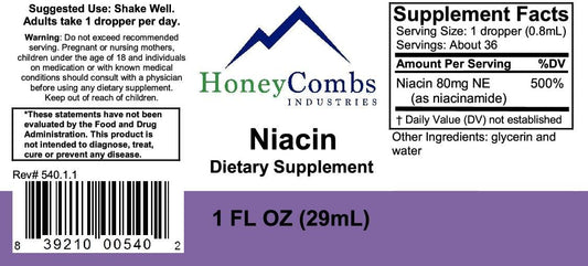 Alcohol-Free HoneyCombs Vitamin B3 Liquid Drops - 8 Oz Niacin Dietary Supplement for Circulation & Immune System - Non-GMO Liquid Vitamin Niacin Drops