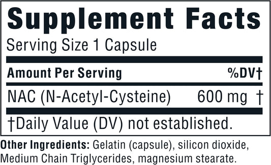 600mg NAC N-Acetyl L-Cysteine Capsules for Antioxidant & Health Support - Vegan & Gluten-Free Dietary Supplement - 60 Servings