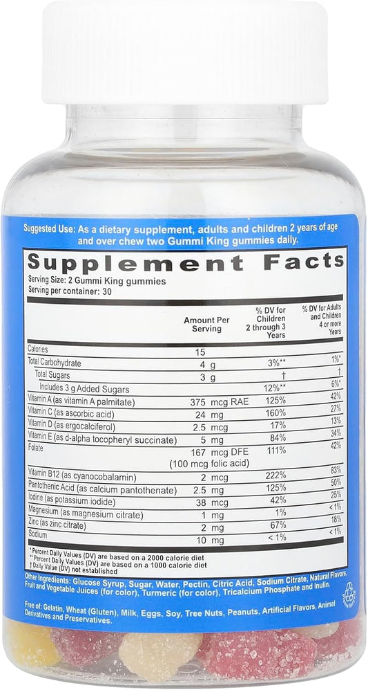 60 Count Gummi King Multivitamin and Mineral Supplement - Strawberry Lemon Orange Grape Cherry Grapefruit Flavor