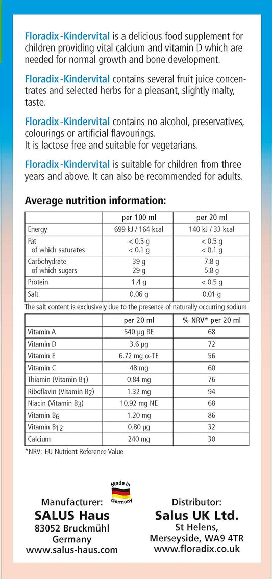 500 ML SALUS Floradix Kindervital Children's Multivitamin and Mineral Supplement