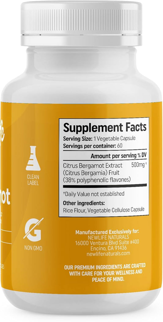 500 MG Citrus Bergamot Heart Health Supplement - Natural Wellness & Aging Support - Pure Extract Formula - 60 Veggie Capsules
