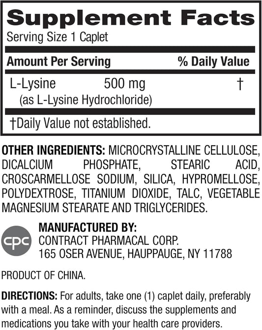 500 mg Earth's Splendor L-Lysine Dietary Supplement for Collagen Support (100 Caplets)