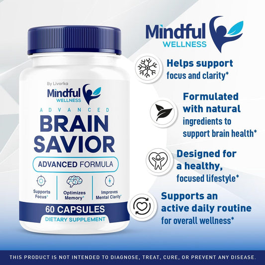 5 Pack of LIVORKA Mindful Wellness Brain Support Capsules - Premium All Natural Formula, 300 Capsules for 5 Months Supply