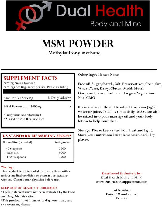 5 lb Bulk MSM Powder for Dual Health Support - Body & Mind Pure Methylsulfonylmethane SupplementVendor:Dual Health Body & MindRegular price $192.74 AUDRegular priceUnit price per-
