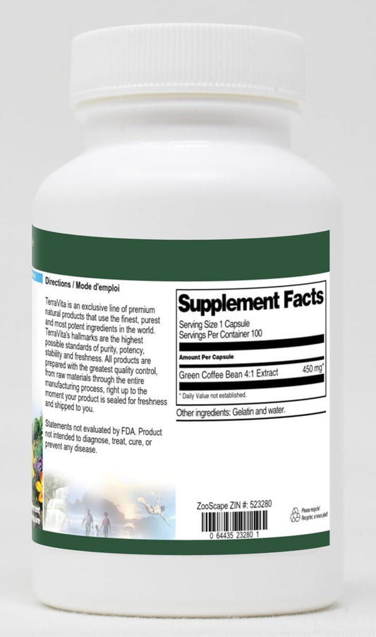 450mg Green Coffee Bean Extract Capsules - 100 Count (4:1 Concentration, ZIN: 523280)