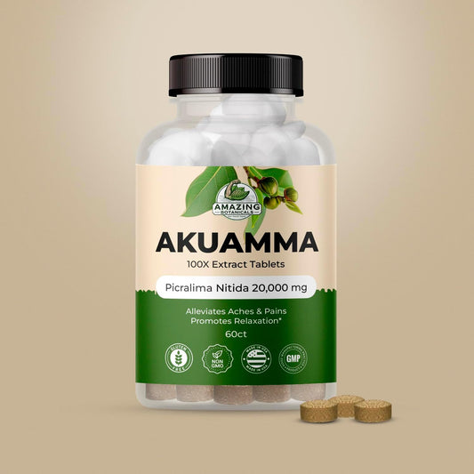Akuamma Extract Tablets - 200mg 100X Strength - 60 Tablets - Mood Boost, Stress Relief, Focus & Clarity - Natural Calmness Support