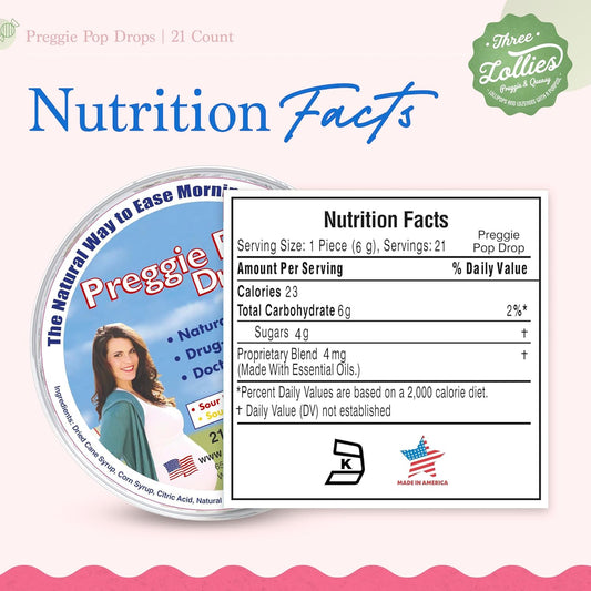 Three Lollies Preggie Drops - Natural Morning Sickness Relief Lozenges with Essential Oils - 21 Count Box - 4 Flavors Available