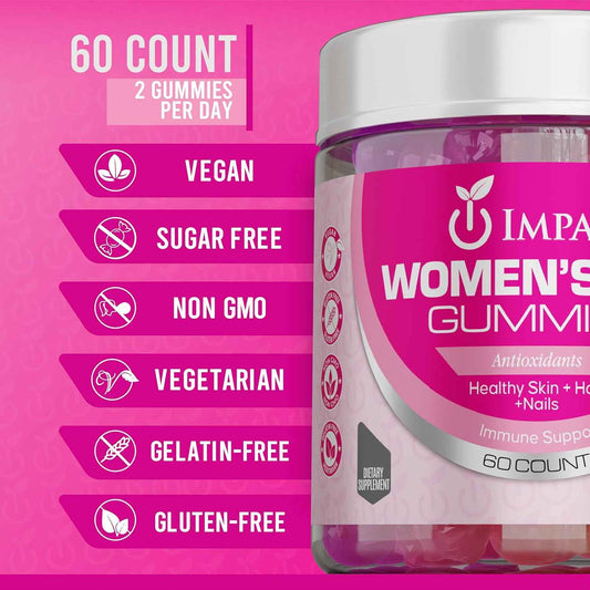 Impact Womens Multivitamin - 60 Count Sugar Free Gummies, Multivitamin Support Healthy Skin & Immune System - Vegan Multivitamin for Women
