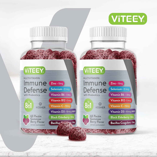 Viteey Multivitamin Gummies 8 in 1 Immune Support Supplement with Probiotics - Immune Boosters for Adults & Teens - Vegetarian, Gelatin Free, GMO Free - Chewable Berry Flavored Pectin Immune Defense