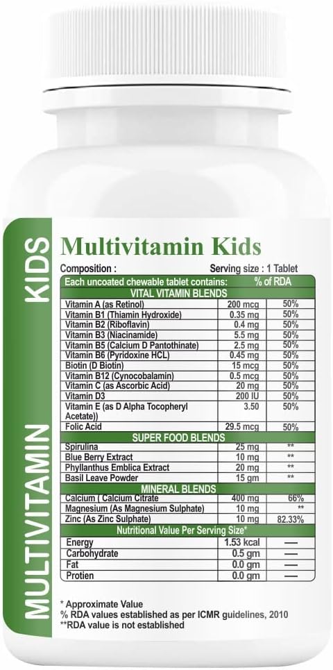 GOA NUTRITIONS Organic Touch Multivitamin for Kids with Vitamin C, D, E, B12, and Zinc - 60 Chewable Tablets for Growth, Development, Bone Health, and Immunity