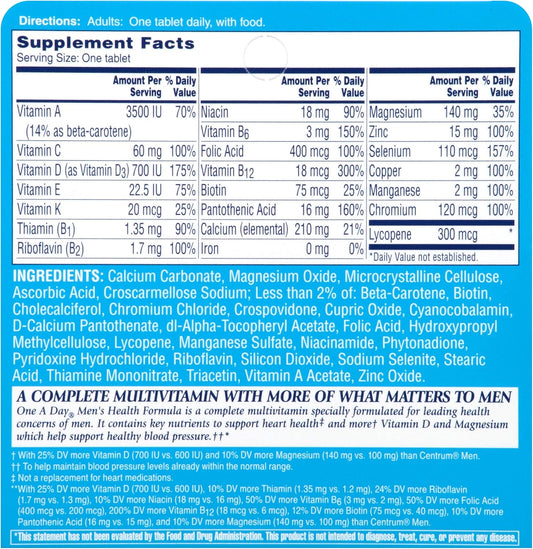 Men's Daily Multivitamin with Vitamins A, C, E, B1, B2, B6, B12, Calcium & D - 60 Count
