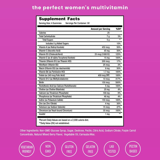Women's 40+ Multivitamin Gummies with Omega-3, B-Complex, Iron, Vitamin D3 - Vegan, Sugar Free, 120 Count