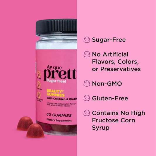 Pretty Gummy Hair, Skin, and Nails Supplement with Biotin & Collagen - Orange/Watermelon Flavor - 60 Count - Adults