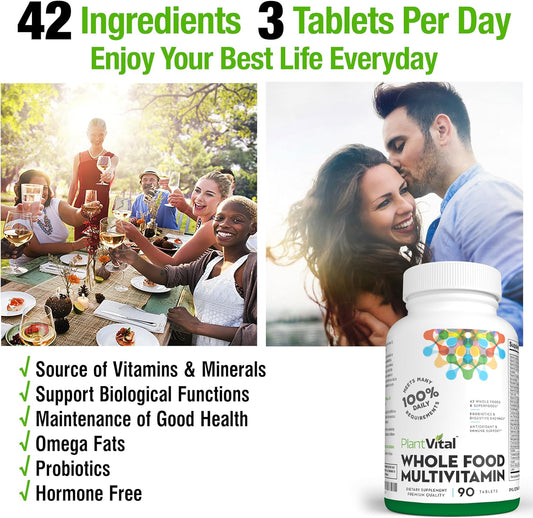 Plantvital Whole Food Multivitamin with 42 Superfoods, Raw Veggies, and Fruits - Earth Energy Supplement with Pure Fruit and Vegetable Extracts - 90 Tablets