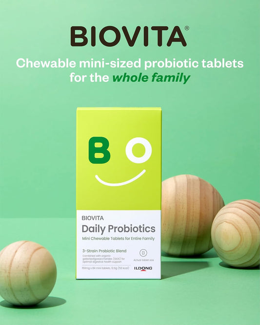 Organic Prebiotic Family Probiotic Mini Tablets (84ct, 28 Days) - Chewable Synbiotic Supplement for Gut Health & Digestion