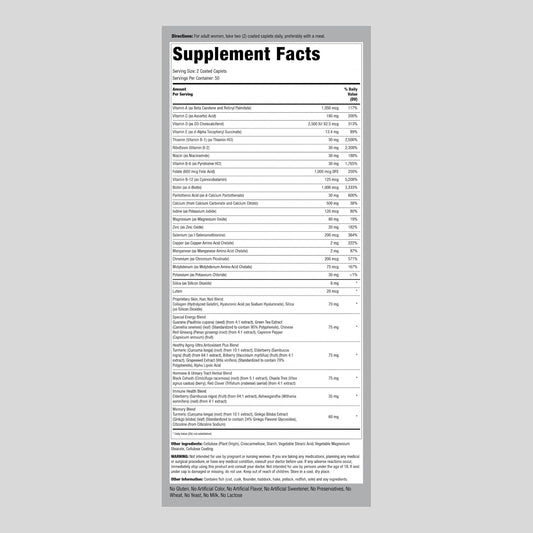 Women's Multivitamin 50 Plus - 100 Coated Caplets - Mega Multi Vitamin - Non-GMO, Gluten Free Supplement by Piping Rock