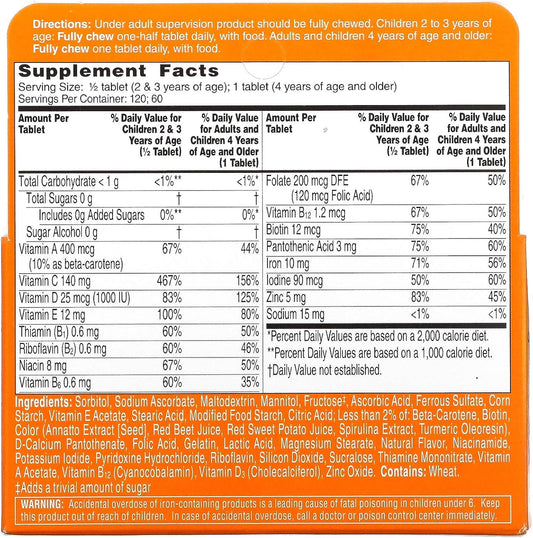 Cherry Flavored Chewable Multivitamin Tablets for Kids, Teens, and Adults - Kosher, Iron-Rich Formula - 90 Tablets
