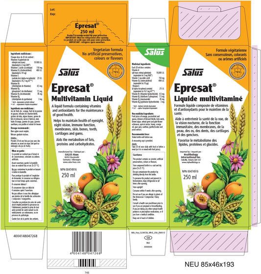 Flora Salus-Haus Floradix Epresat Adult Liquid Multi Vitamin, 8.5 Fl Oz - Fast Absorption, Vegetarian Formula for Men & Women
