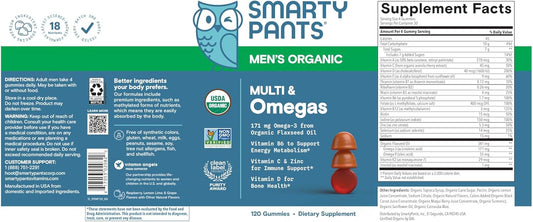 Organic Men's Multivitamin Gummies with Methylfolate, Omega 3, Vitamin D3, C, B12, B6, A, K, Zinc, and Biotin for Immune Support - Vegetarian Formula, 120 Gummies (30 Day Supply)