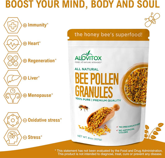 Organic Bee Pollen Granules for Bearded Dragons | 8 Oz Superfood Packed with Antioxidants, Protein, and Vitamins | 100% Pure and Gluten-Free Nutritional Yeast
