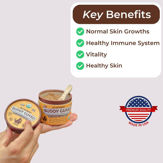 Petsmont Buddy Guard: Organic 8 Mushroom Powder Blend for Dogs & Cats - Natural Probiotic & Immune Support with Chaga, Reishi, Lion's Mane, Turkey Tail - Patent Pending Formula