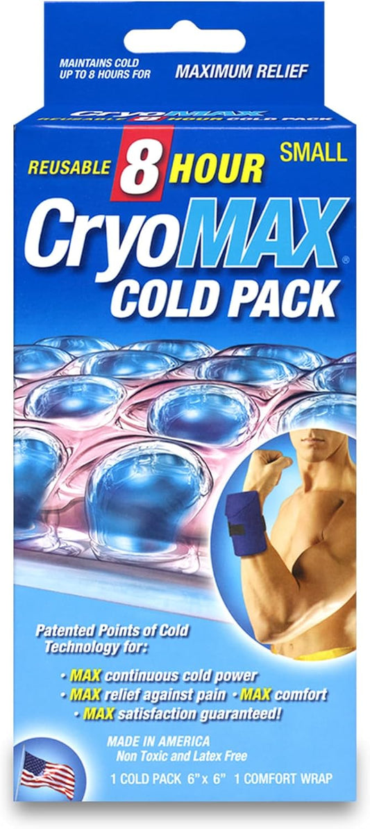 CryoMAX Reusable Cold Pack - Small Size, 8 Hour Cold Therapy Ice Pack (2 Pack) - 6"x 6" dimensions