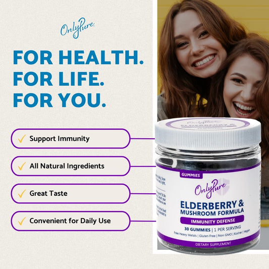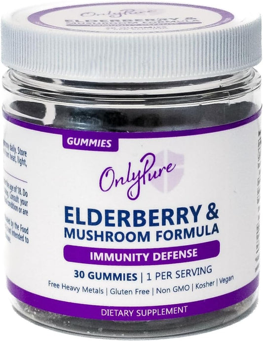 All Natural Elderberry and Mushroom Immunity Defense Gummies with Lion's Mane and Reishi - Vegan, Non-GMO, Made in USA - 30 Count