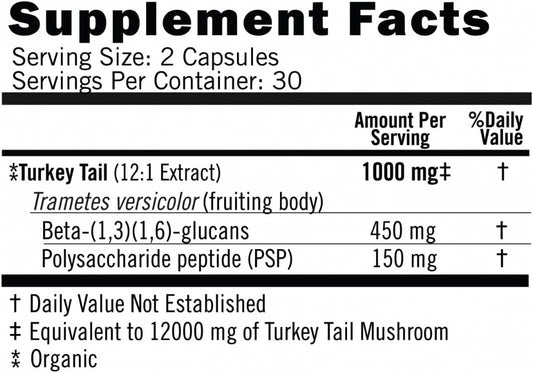 Organic Turkey Tail Mushroom Supplement - 12:1 Extract - 60 Vegan Capsules - High Beta-D-Glucans - EVERSIO WELLNESS Defend Now