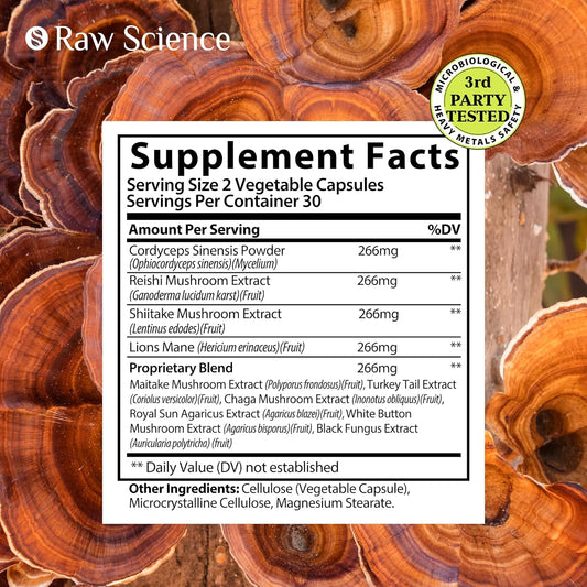Mushroom Nootropic Supplement with Lion's Mane, Reishi, Chaga for Brain & Focus Support - 60 Capsules