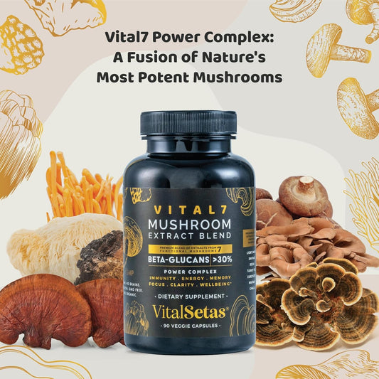 Neuro Vital7 Mushroom Extract Supplement for Focus, Energy & Mental Performance - 90 Veggie Capsules