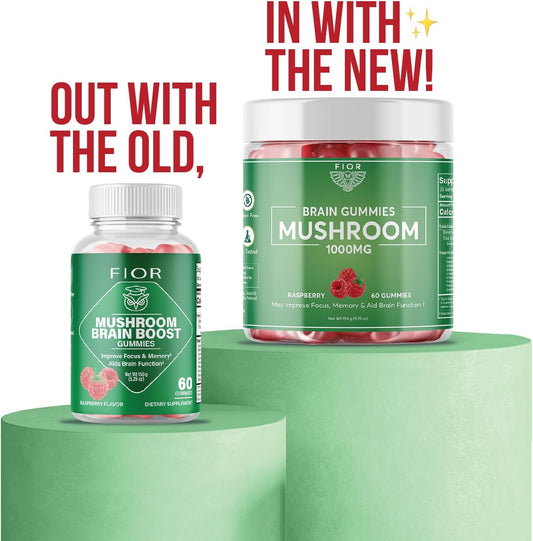 FIOR Naturally Sugar-Free Mushroom Gummy Supplement, 60 Count, Multi Mushroom Complex with Lions Mane, Chaga, Cordyceps, Reishi, Turkey Tail, Maitake, Shiitake, King Trumpet