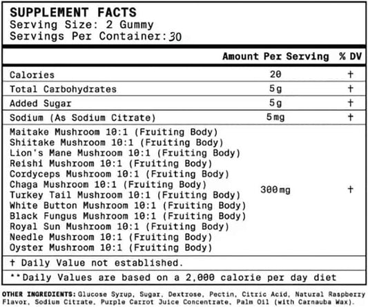 Raspberry Flavored 10 in 1 Magic Mushroom Gummies - Cognitive Function, Immune Health, Energy - Lions Mane, Reishi, Chaga, Cordyceps - 2 Bottles
