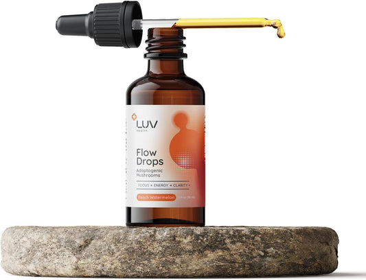 LUV Flow Drops® Adaptogen Mushroom Blend for Mental Clarity & Energy - 4-Pack 120 Servings, Vegan Keto, Focus & Immunity Support with Lion's Mane, Cordyceps, Reishi - Non-GMO USA Made