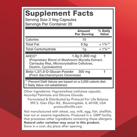 Protocol AHCC 600mg Supplement for Liver & Immune Support - Vegan & Nut Free - 60 Veg Caps - Promotes Cellular Health & Stress Relief