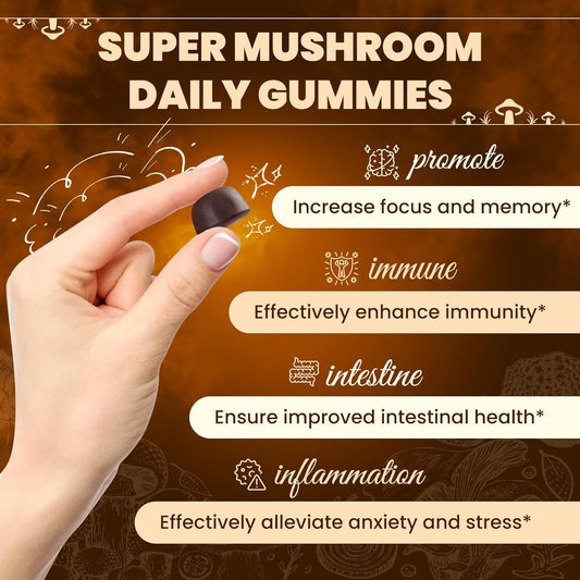 Ellfent Magic Mushroom Gummies - 10 in 1 Complex for Cognitive Function, Immune Health, Energy - Raspberry Flavor - 1 Piece