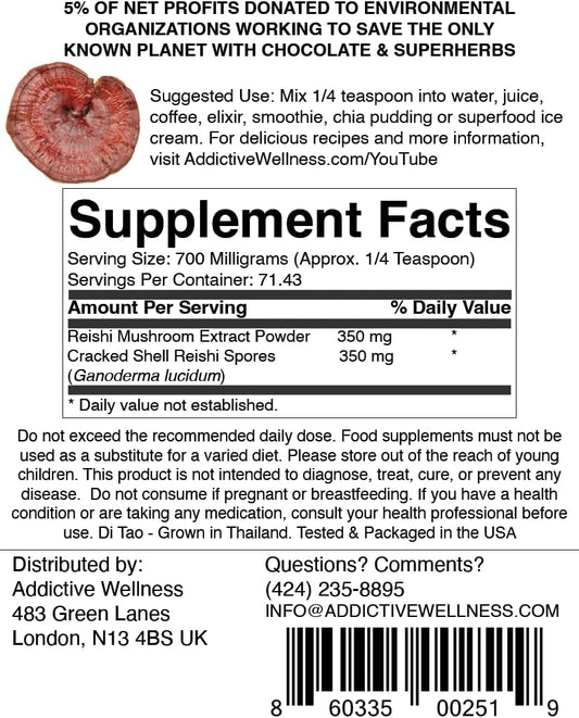 Wildcrafted Reishi Mushroom Extract Powder (50/50 Blend) with Spores - Pure & Potent Wood Grown Ganoderma - 50g (1.76 oz)